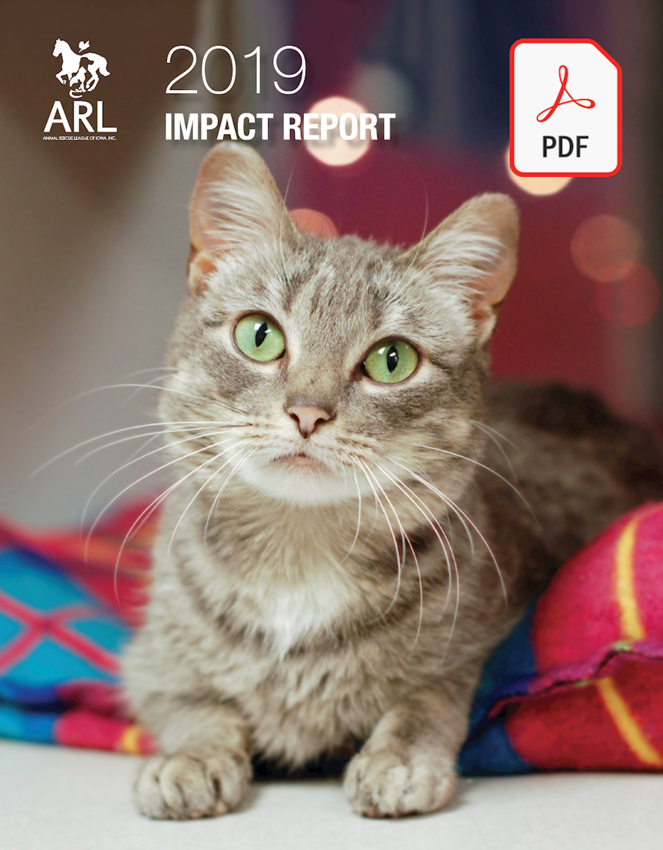 The 2019 Impact Report highlights the Animal Rescue League of Iowa’s journey over the past 10 years, the amazing results we achieved together to save a record number of lives in 2019, and where we’re headed in the future.