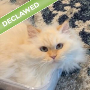HOW TO ADOPT: This cat is participating in our Shelter Cat Getaway foster program and is available for adoption by appointment only. To schedule a time to meet this cat, please contact Mary at mmccarroll@arl-iowa.org — – A very special cat looking for a very special home – Needs a home with absolutely NO OTHER PETS – Front declawed – A stunning cat who needs a very quiet, calm home with just one or two adults – Does not do well with children and needs a home without them – Looking for a home with a very experienced cat person – she desperately wants a human to bond with, and will be a devoted friend for life – Enjoys sitting on your lap with a cozy blanket where she will make biscuits all day long – Will want to sleep with her human, if you will let her – Will tolerate brushing for short periods of time, so she will need professionally groomed at either a profession groomer, or at your veterinarian’s office – Loves to look out the window and sit in her tall cat tree – Likes to “hunt” her cat toys, especially her pipe cleaners that she can carry around in her mouth – She can become overstimulated and cranky when she is not in the mood to be picked up – but she is very good about giving you signals that she needs time alone. She needs a cat savvy adopter who can read those signals and won’t push her when it’s not her idea – She will be an amazing friend for the right person in the right home All adoptable cats and kittens are spayed/neutered, microchipped and up to date on vaccinations (rabies and FVRCP as appropriate for their age) |