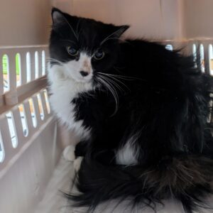 – Has a lot of love to give and will be a wonderful companion for a quiet person or two who will allow her to settle in at her own slow pace. Once you’ve earned her trust, you’re in for a lifetime of loud purrs and playful antics