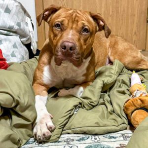 – Foster family says he is calm and quiet most of the time but can get excited and playful, likes to play tug and chew on squeaky toys