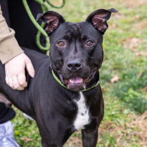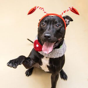 – Has been living with a dog in his foster home and doing fairly well; will do best with slow intros, as not every dog is going to appreciate his intensity at first; will also do best with a neutral, easygoing dog who can essentially ignore him and tolerate his awkwardness at first, then be down to play once first impressions are over (dog intro recommended)