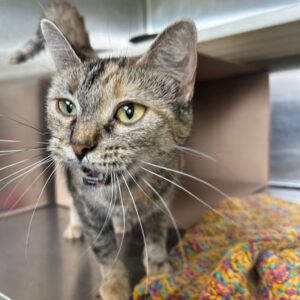 – Very sweet, cuddly and loving kitty who enjoys sitting next to you – Likes being petted on her head and back – When feeling playful likes toy balls, catnip toys and feather wand toys – Loves being picked up and put on your shoulders! – Not a fan of being touched on her belly – Needs a slow introduction to other resident cats to set her up for success – Has lived with dogs All adoptable cats and kittens are spayed/neutered, microchipped and up to date on vaccinations (rabies and FVRCP as appropriate for their age) |