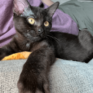– Loves wrestling and napping with his cat friends and would love a similar fun cat or kitten friend in his new home
