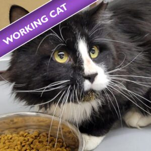 This cat is participating in our Camp Purr working cat program, which is designed for feral or semi-feral cats that would be happiest living outside as working cats. Adopters must provide shelter and food/water to these cats year round and need to be willing to work with our Camp Purr team to ensure these cats are acclimated appropriately and humanely to their new environment. Because these cats are familiar with the other cats they are living with currently, we require that all Camp Purr cats be adopted with at least one other Camp Purr cat. The adoption fee for each cat in this program is just $25, and all cats have been spayed/neutered, microchipped and vaccinated.