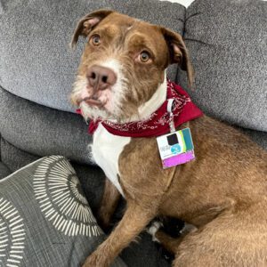 – Recently met a dog friend he had a blast with in his foster home – they ran and played in the yard, wrestled on the couch and had a grand time; may love having a dog friend to play with in his new home