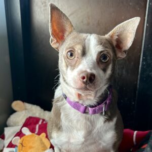 – Has done well with calmer dogs while he’s been in our care and has followed them around learning how to be brave; would likely do best in a home with another dog to learn the ropes from