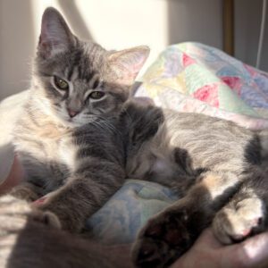 HOW TO ADOPT: This kitten is available for adoption by appointment. To schedule a time to meet this kitten, please email meetme@arl-iowa.org. — – A silly kitty that loves to play all day – Runs around her foster family’s house making a little chirping noise – Likes to snuggle up on the couch once she’s used up her energy – Loves to play with the other cats and kittens in her foster home, and has also done well with the dogs in the home All adoptable cats and kittens are spayed/neutered, microchipped and up to date on vaccinations (rabies and FVRCP as appropriate for their age) |