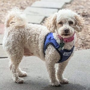 – Likes going on walks and will look to his people for confidence while out and about; may not like having her leash put on but is happy once she’s on the walk
