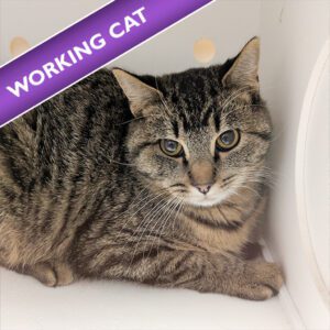 This cat is participating in our Camp Purr working cat program, which is designed for feral or semi-feral cats that would be happiest living outside as working cats. Adopters must provide shelter and food/water to these cats year-round and need to be willing to work with our Camp Purr team to ensure these cats are acclimated appropriately and humanely to their new environment. Because these cats are familiar with the other cats they are living with currently, we require that all Camp Purr cats be adopted with at least one other Camp Purr cat. The adoption fee for each cat in this program is just $25, and all cats have been spayed/neutered, microchipped and vaccinated.