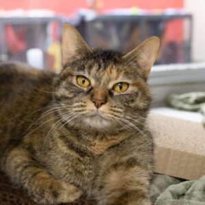 – Cuddly, loving and playful kitty who enjoys sitting next to you – Likes being petted all over – Loves to play with cat toys of all kinds – Has lived with kids – Stressed around dogs and other cats (happiest as only pet) This cat has shown signs of overstimulation while in the shelter. Lots of handling, playing with hands, and excessive petting can cause them to overstimulate, which can result in scratching and/or biting. This cat is looking for experienced cat owners who will watch this cat’s body language while interacting to note signs of overstimulation (tail waving, fur rippling, dilated pupils, ears turned back and quick body movements) and be willing to respect their boundaries. This cat will also benefit from interactive toys such as wands and ball spinners while playing. We are happy to speak with you more when you visit and can provide post-adoption resources. If you can give this cat mental stimulation, patience and space when they need it, please consider adopting! They would love to be your sidekick and buddy for life! All adoptable cats and kittens are spayed/neutered, microchipped and up to date on vaccinations (rabies and FVRCP as appropriate for their age) |