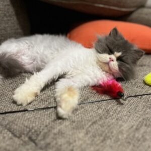 – Fozzie is very active and loves playing with wand toys. Also loves antagonizing his buddy, Frankie