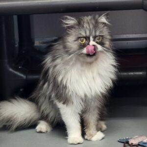 – This cat is available by appointment only. For more information, or to schedule an appointment, please contact Mary at mmccarroll@arl-iowa.org, or Cindy at cgerke@arl-iowa.org — – Stunning cat looking for an experienced, cat-savvy adopter – She LOVES cheese, and cheese flavored treats, especially Churu (this is a great way to bond with her) – Is quite vocal and will share her loud meow with you, as well as her soft purr – Is NOT a lap cat, and prefers not to be picked up, but enjoys being in the same room with you, and sitting next to you, once trust is established – Requires a committed adopter who is willing and able to provide professional grooming and/or the time and ability to brush her and wipe out her eyes on a regular basis (she likes to be brushed)! – This Persian cat came to us from a large breeding situation after the owner passed away. While undeniably beautiful, their early life was very different from that of a typical house cat. – These cats received limited handling and socialization, which means they may be fearful in new environments and around unfamiliar people. They are not naturally outgoing and may take a long time to feel safe in a home. Many may never enjoy being picked up or held, and affection (if it comes), will be on their terms. At intake, several of these cats were severely matted and many were treated for upper respiratory infections, both common in crowded, high-stress breeding environments. They have received veterinary care and grooming, but these experiences may have been stressful and contribute to their sensitivity to handling. – Because of this background, adopters should expect: – These cats have lived with other cats their entire lives, and many may benefit from having a calm, confident feline companion to help them feel more secure and show them the ropes in a home environment. – This cat would do best in a quiet, predictable home with an adopter who understands fearful or under-socialized cats and values providing safety and stability over having a cuddly lap cat. While progress may be slow, the right home can help this cat feel safe and thrive in their own way. – Not a good fit for a home with children, so she is looking for a more mature home All adoptable cats and kittens are spayed/neutered, microchipped and up to date on vaccinations (rabies and FVRCP as appropriate for their age) |