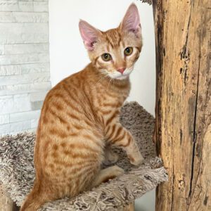 – Loves cat trees, comfy beds, cat caves and all types of toys; he’s adorable when he carries his toys around
