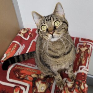 This cat has shown signs of overstimulation while in the shelter. Lots of handling, playing with hands, and excessive petting can cause them to overstimulate, which can result in scratching and/or biting. This cat is looking for experienced cat owners who will watch this cat’s body language while interacting to note signs of overstimulation (tail waving, fur rippling, dilated pupils, ears turned back and quick body movements) and be willing to respect their boundaries. This cat will also benefit from interactive toys such as wands and ball spinners while playing. We are happy to speak with you more when you visit and can provide post-adoption resources. If you can give this cat mental stimulation, patience and space when they need it, please consider adopting! They would love to be your sidekick and buddy for life!