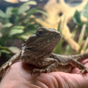 HOW TO ADOPT: This bearded dragon is available for adoption by appointment. To schedule a time to meet this beardie, please email meetme@arl-iowa.org. — – Friendly beardie who is getting more used to attention; has been doing well in their foster home but it will still be important to work with them on handling in small increments to keep interactions comfortable and positive for them – Eating is their passion; also drinks from a water bowl on their own, which not all beardies do |
