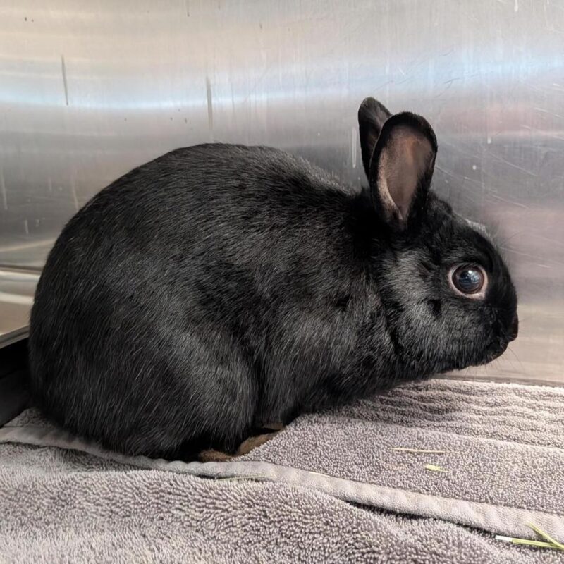 – Steadily gaining confidence in our care and showing more of his sweet personality each day – Not a fan of being picked up, but does enjoy gentle pets and will approach you when he’s feeling curious; clearly interested in getting to know his people, just prefers to keep all four paws on the ground right now – Has all the makings of a very loving and devoted companion with patience, consistency, and a home that respects his boundaries – Will do best with someone who understands that building a bond with a rabbit is a rewarding journey and Ebony is well worth it! |