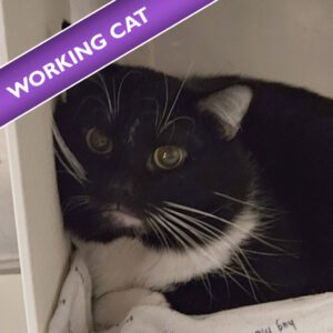 This cat is participating in our Camp Purr working cat program, which is designed for feral or semi-feral cats that would be happiest living outside as working cats. Adopters must provide shelter and food/water to these cats year round and need to be willing to work with our Camp Purr team to ensure these cats are acclimated appropriately and humanely to their new environment. Because these cats are familiar with the other cats they are living with currently, we require that all Camp Purr cats be adopted with at least one other Camp Purr cat. The adoption fee for each cat in this program is just $25, and all cats have been spayed/neutered, microchipped and vaccinated.