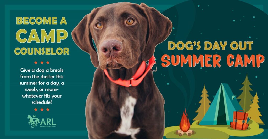 Our Dog’s Day Out field trip program has been so popular, we’re expanding the fun! This special Summer Camp edition is a chance for you to bring an adoptable dog into your home for a weekend, a week or longer – whatever your schedule allows!