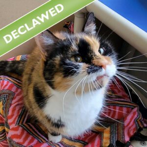 All adoptable cats and kittens are spayed/neutered, microchipped and up to date on vaccinations (rabies and FVRCP as appropriate for their age)